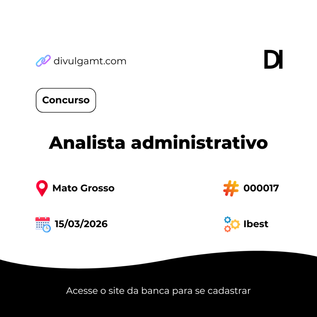 Novo concurso disponível para Mato Grosso! O edital do Ibesth para o cargo de Analista administrativo já está disponível. Confira os detalhes e inscreva-se clicando aqui: https://www.institutoibest.org.br/. As inscrições vão até 15/03/2026 pela banca Ibesth. Não deixe de conferir as informações completas no site buscando pelo código 000017. Confira nossas redes sociais através do link […]